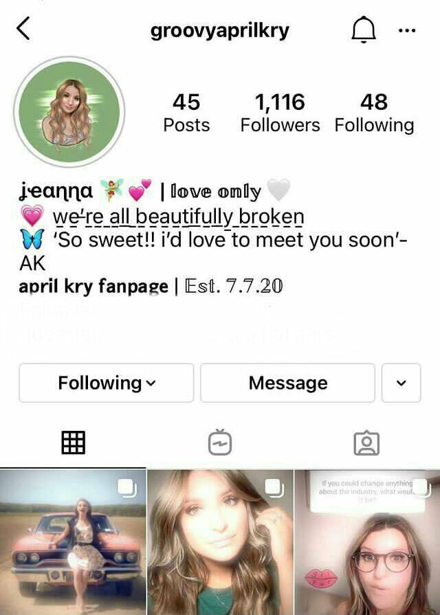 She also has a fan account on Instagram for April, another country music superstar. Her account is @groovyaprilkry go give her a follow on there too!